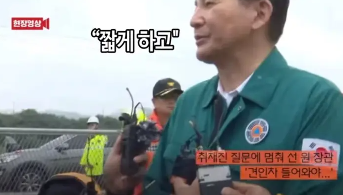 기자들의 질문에 "짧게하고" 비키려고 한 행동이