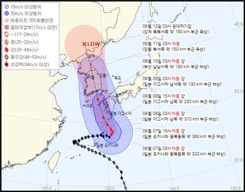 한반도를 강타할 것으로 보고있다.
