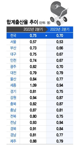 2분기 합계출산율 0.7명…0.6명대로 내려 앉나