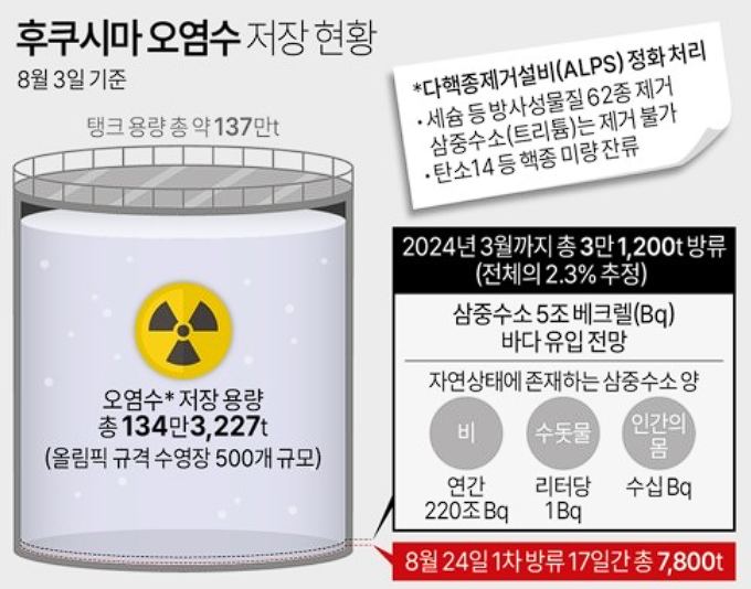 도쿄전력은 이후 하루에 약 460t의 오염수를 바닷물로 희석해 방류하는 작업을 17일간 진행, 일차적으로 오염수