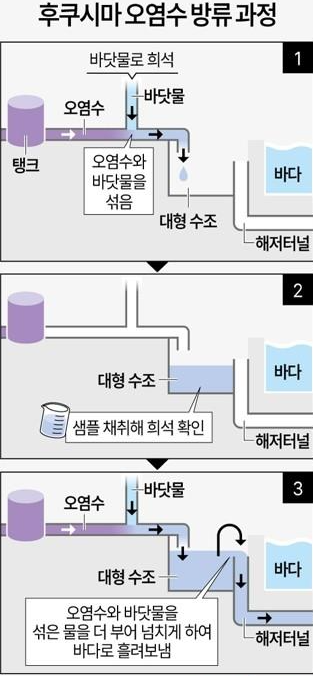 도쿄전력은 하루에 약 460t의 오염수를 바닷물로 희석해 방류하는 작업을 17일간 진행, 일차적으로 오염수 7천800t을